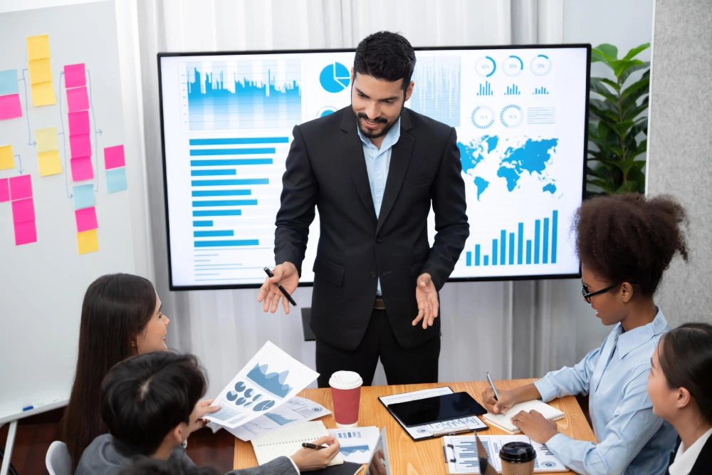 The power of a well-crafted presentation lies not only in the content but in the design that delivers it. Our team combines creative infographics, custom visuals, and clean layouts to ensure your presentation stands out. By leveraging your brand’s colors, fonts, and identity, we help reinforce your brand’s professionalism, giving you an edge in competitive environments.