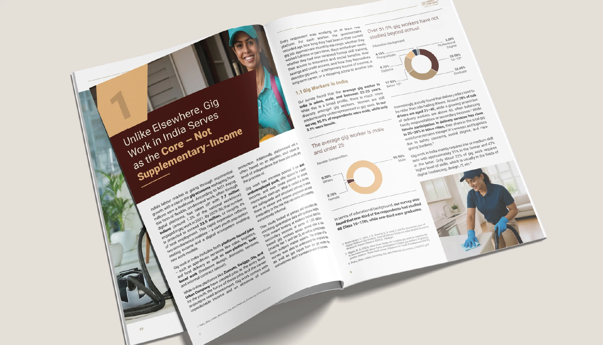 Creative Nexus was engaged to design and structure a nationwide research report on gig workers in India. The objective was to present large-scale survey findings, policy insights, and recommendations in a clear, structured, and easy-to-read format for policymakers, institutions, and ecosystem stakeholders.