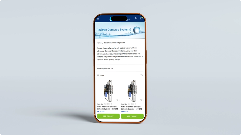 Creative Nexus was engaged to design and develop the Water Treatment Supply website on WordPress. The objective was to modernise the website, organise a large product range clearly, and make it easy for customers to find product information, request specification sheets, and place orders with confidence.